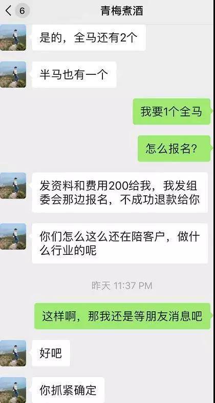 近日,有自媒體發(fā)布文章《太壞了!剛轉完錢就被拉黑!跑圈再現(xiàn)名額詐騙》。文章中稱,各個跑圈中紛紛傳出,一個深圳名叫“青梅煮酒”的人用深馬名額進行詐騙,某個群就有十幾個人被騙,并且不止一個群的跑友。
