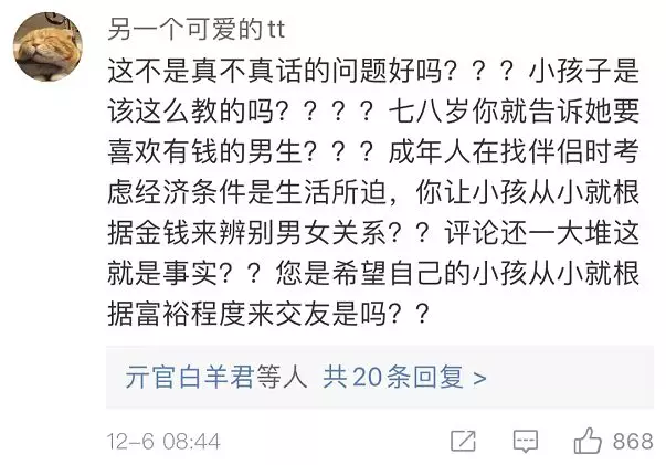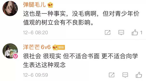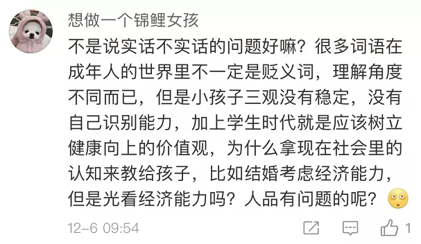 也有網(wǎng)友覺得,出發(fā)點是好的,內(nèi)容在成人看來或許有其“合理性”,但不應該拿來這樣教孩子。