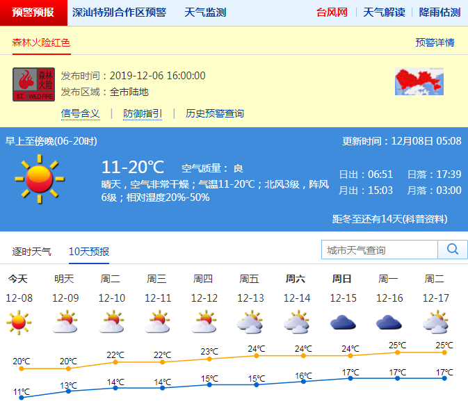 見圳客戶端·深圳新聞網(wǎng)2019年12月8日訊 12月6日,深圳市氣象臺在全市陸地發(fā)布森林火險紅色預警,這是今年首個森林火險紅色預警。