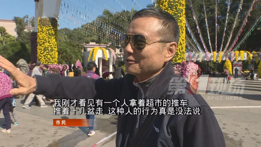 市民說(shuō),現(xiàn)場(chǎng)沒(méi)有人引導(dǎo),弄得場(chǎng)面如同哄搶,殘花敗葉滿地,實(shí)在太不雅觀,有損形象,甚至有人推了一輛超市的推車,一下搬走了10多盆。