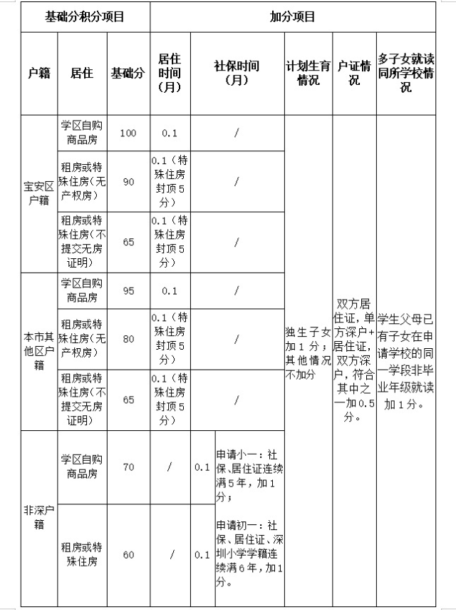 寶安明年入學積分大變化:獨生子女積分擬從90分調為1分,目前正征求意見