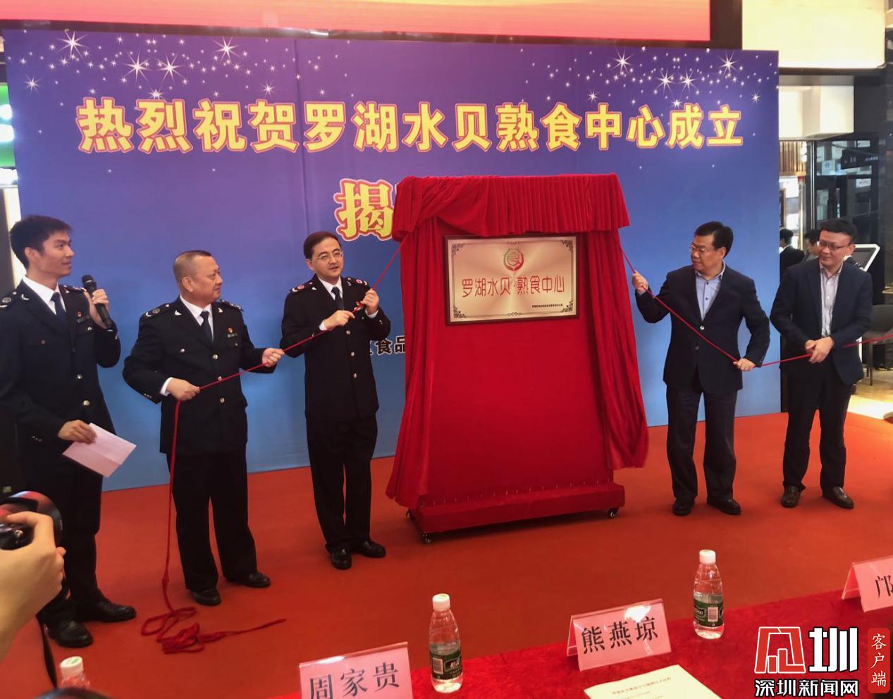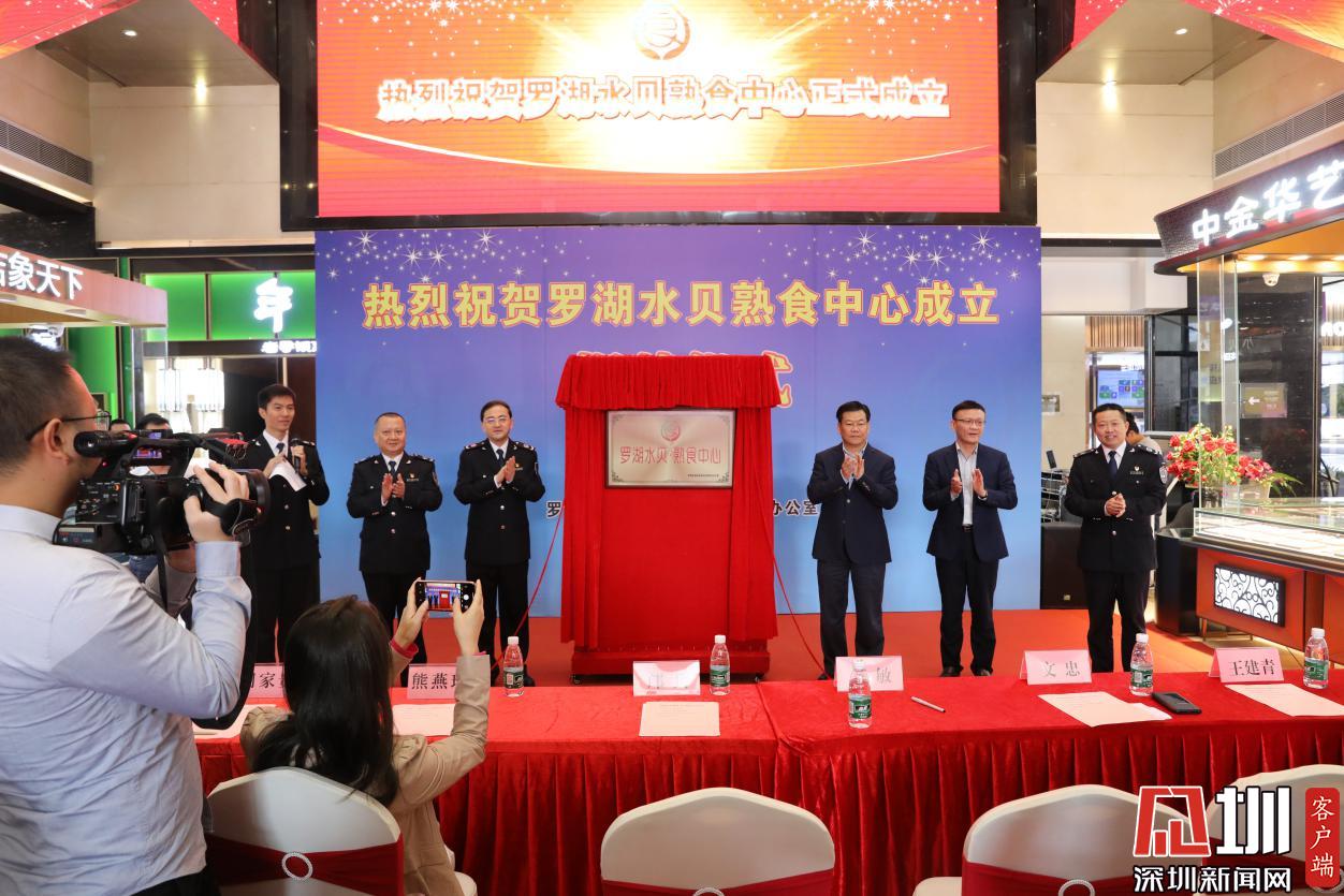 黃敏副市長、市市場(chǎng)監(jiān)管局局長鄺兵、羅湖區(qū)副區(qū)長文忠及深圳市市場(chǎng)監(jiān)管局、羅湖區(qū)政府有關(guān)負(fù)責(zé)同志為羅湖水貝熟食中心揭牌