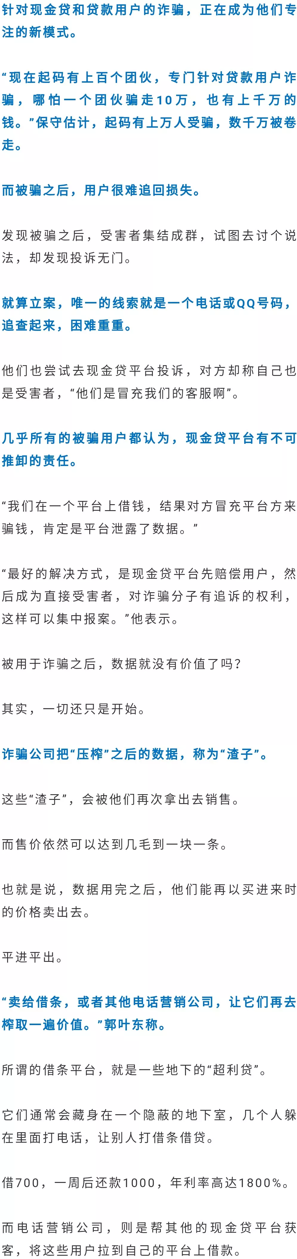 在2017年監(jiān)管收緊后,很多不正規(guī)的小現金貸公司,業(yè)務難以為繼,就開始干起銷售數據的生意。