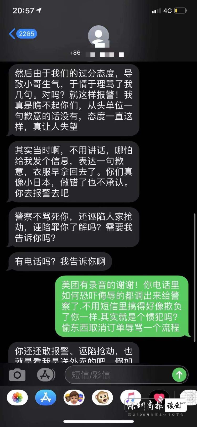 深圳商報(bào)2019年12月24日訊 讓美團(tuán)跑腿給客戶送服裝,本想省事,不料卻更鬧心。深圳市民鄭女士讓美團(tuán)跑腿幫她配送價(jià)值4000多元的衣服給客戶。令其煩惱的是,客戶與跑腿小哥電話溝通后,反遭其電話恐嚇辱罵,并將衣服扔掉,揚(yáng)言要把她殺了。到底發(fā)生了什么,讓跑腿小哥大發(fā)雷霆,如此對待客戶?