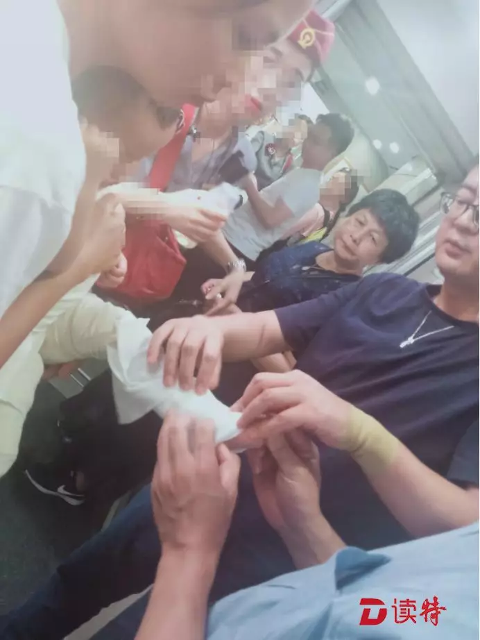 黃謙醫(yī)生查看了患兒傷口,初步判斷為深二度燒傷,于是迅速組織該院同行的醫(yī)護(hù)人員用冷水為傷口降溫,再用毛巾包扎傷口,防止感染?;純旱奶弁锤旭R上減輕,停止了哭鬧。他又找到乘務(wù)員為患兒準(zhǔn)備鹽水,防止傷口滲液導(dǎo)致脫水,并囑咐家屬下車后及時到醫(yī)院治療。