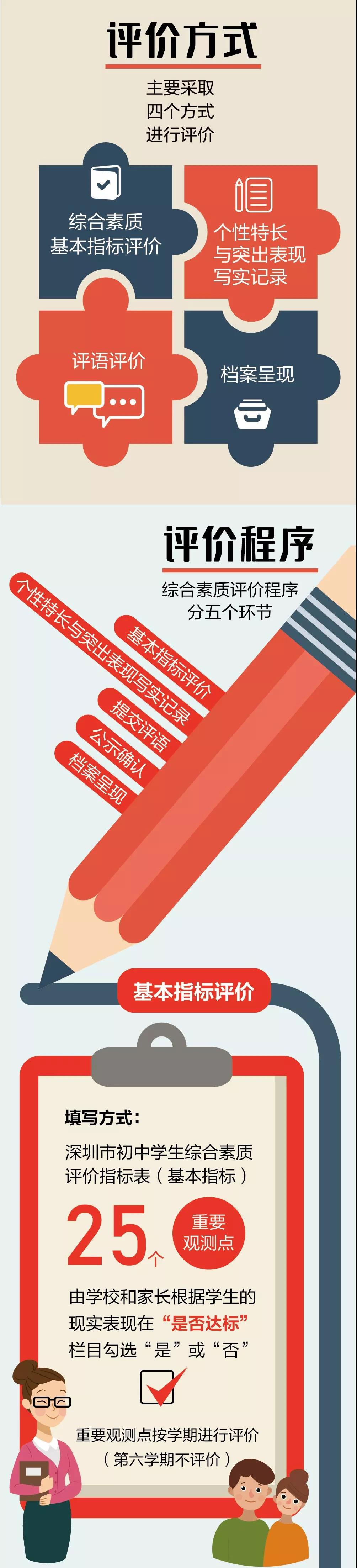 為深入貫徹中共中央、國務(wù)院《關(guān)于深化教育教學(xué)改革全面提高義務(wù)教育質(zhì)量的意見》和《教育部關(guān)于進(jìn)一步推進(jìn)高中階段學(xué)??荚囌猩贫雀母锏闹笇?dǎo)意見》(教基二〔2016〕4號(hào))、《廣東省教育廳關(guān)于實(shí)施初中學(xué)生綜合素質(zhì)評(píng)價(jià)的指導(dǎo)意見(試行)》(粵教基[2018]10號(hào))等文件精神,落實(shí)立德樹人根本任務(wù),“五育并舉”,促進(jìn)學(xué)生的全面發(fā)展和個(gè)性發(fā)展,根據(jù)工作需要,深圳市教育局于2019年12月11日啟動(dòng)了《深圳市初中學(xué)生綜合素質(zhì)評(píng)價(jià)方案(試行)》的修訂工作。在大量調(diào)研論證、多方征求意見的基礎(chǔ)上,形成了《深圳市初中學(xué)生綜合素質(zhì)評(píng)價(jià)方案(試行)(修訂征求意見稿)》。
