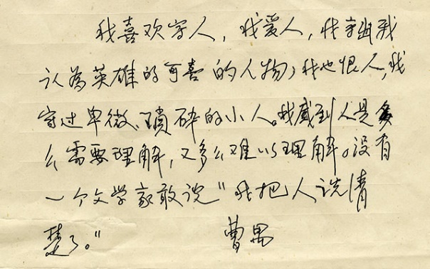 曹禺創(chuàng)作感言:“我喜歡寫人”手稿