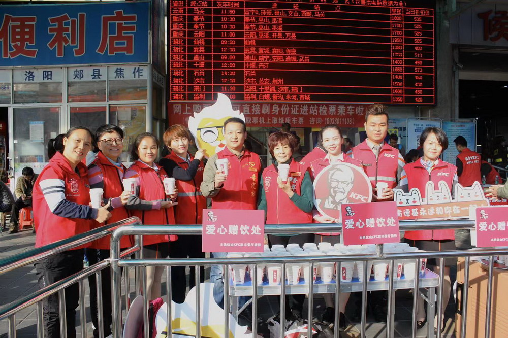 福永義工以及深圳肯德基工作人員現(xiàn)場贈送熱飲。