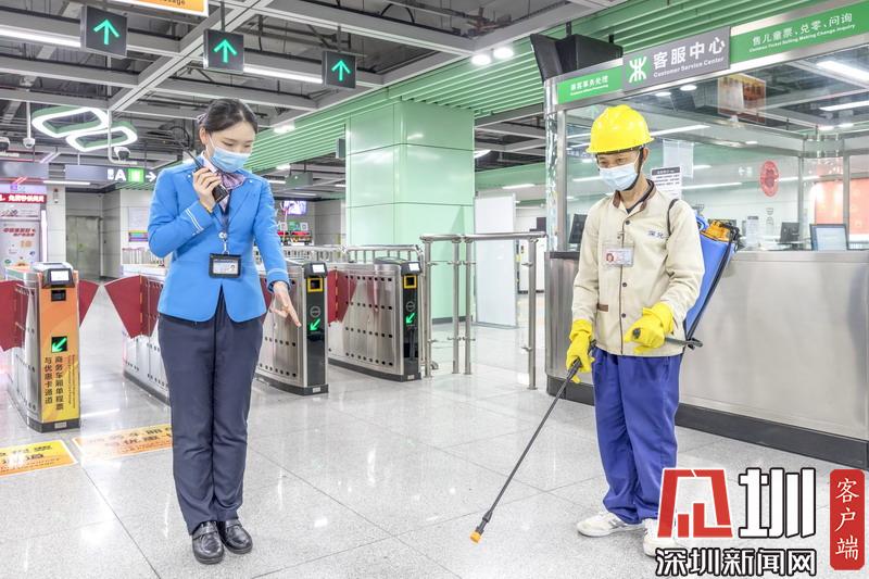 深圳地鐵工作人員對往來乘客進行體溫檢測。
