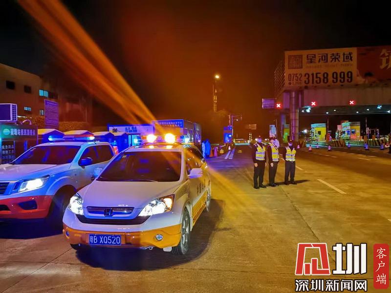 深高速公司工作人員在龍大高速免費段進行深夜值守。