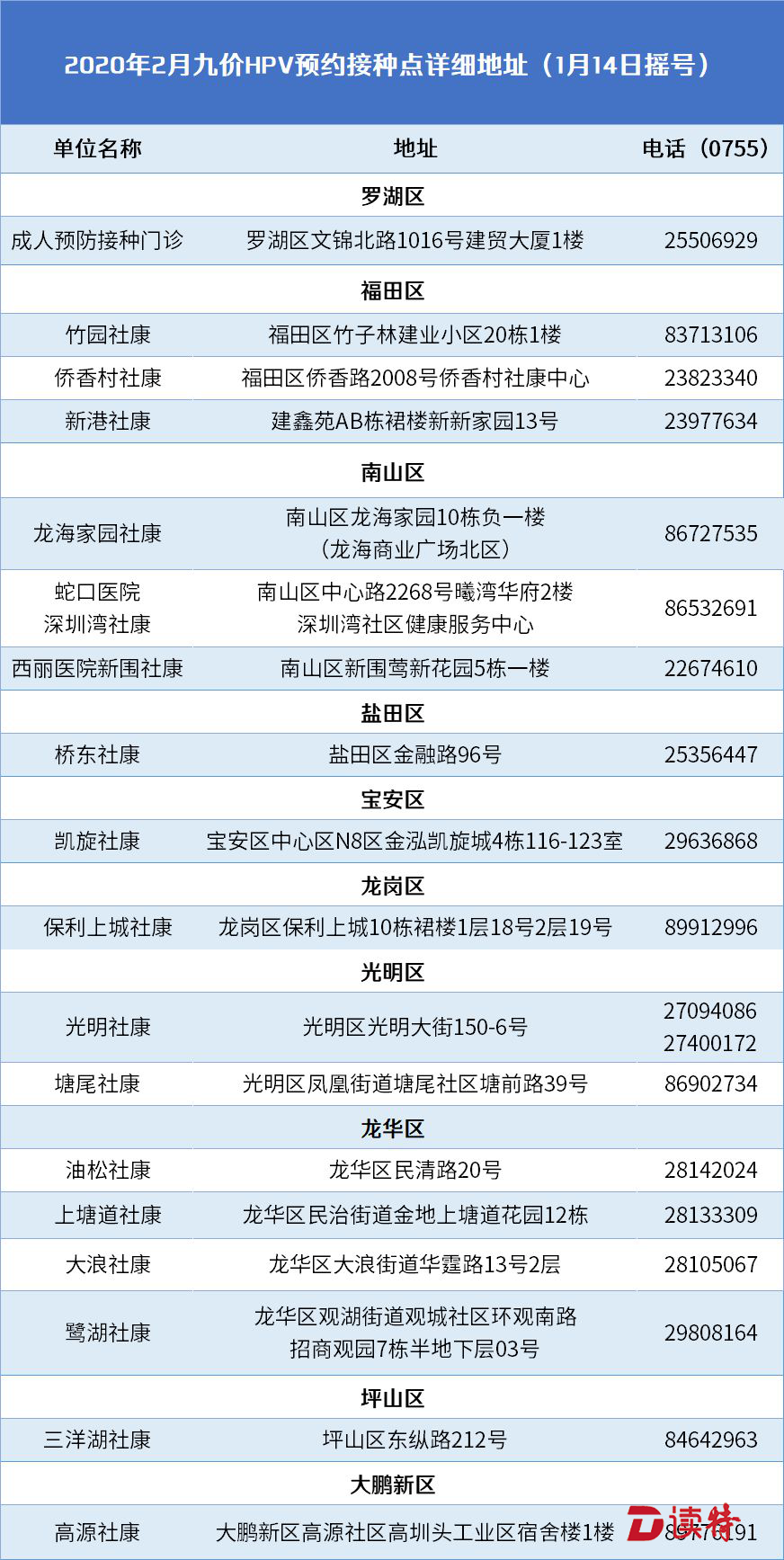 深圳特區(qū)報(bào)2020年1月31日訊 為貫徹執(zhí)行《廣東省推出防控新型冠狀病毒感染的肺炎疫情一級(jí)響應(yīng)16條措施》,經(jīng)專家評(píng)估并報(bào)深圳衛(wèi)健委同意,決定全市預(yù)防接種門(mén)診的開(kāi)診時(shí)間,暫推遲到2月14日后,具體時(shí)間視防控工作需要另行通知。搖中今年1月九價(jià)HPV疫苗的小姐姐,不用擔(dān)心,2月14日后再撥打社康咨詢電話,和工作人員協(xié)商修改這次的打針時(shí)間。