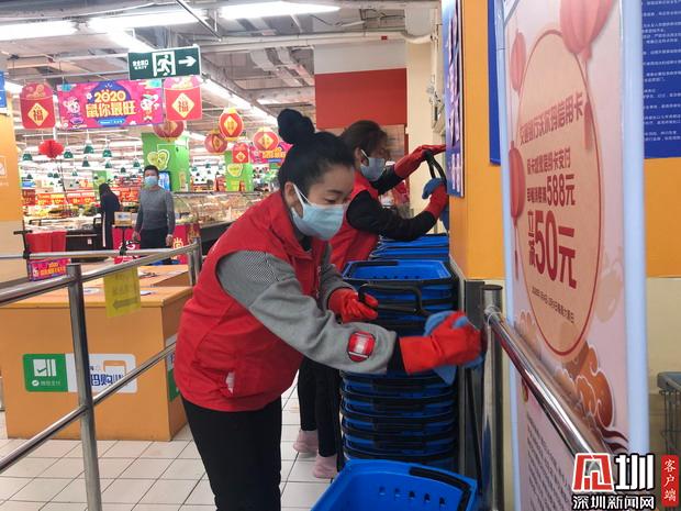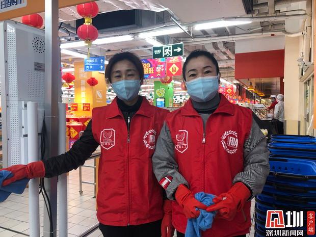 “其實(shí)家里人知道后也不贊成我們這個(gè)時(shí)候來(lái)做志愿者,畢竟也有點(diǎn)擔(dān)心嘛”于文平對(duì)記者說(shuō):“我們作為一個(gè)小市民,對(duì)國(guó)家來(lái)說(shuō)大的貢獻(xiàn)可能談不上,但是因?yàn)槲蚁矚g深圳這座城市,所以我決定要出一份力,做一些力所能及的事,過(guò)年期間能讓大家吃上安心的食品,來(lái)購(gòu)物的時(shí)候能用上消毒過(guò)的購(gòu)物車、購(gòu)物籃,我也覺(jué)得很開(kāi)心。”
