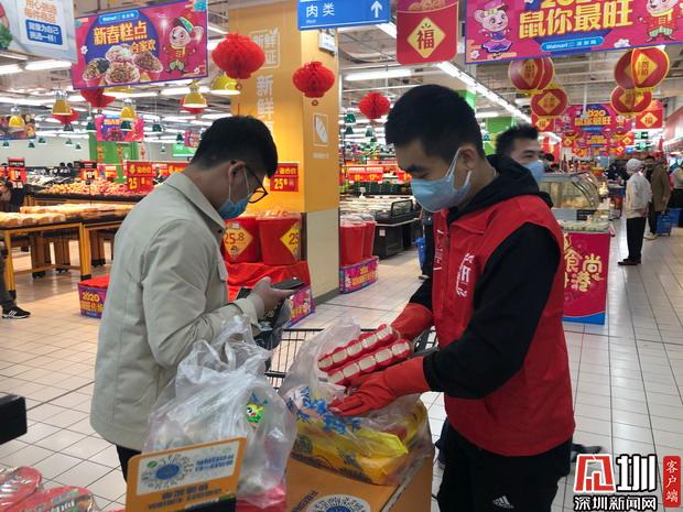 見(jiàn)圳客戶端·深圳新聞網(wǎng)2020年1月31日訊(見(jiàn)圳客戶端、深圳新聞網(wǎng)記者 胡津瑋)戴上口罩、手套,再穿上標(biāo)志性的紅色馬甲,市食藥志愿服務(wù)總隊(duì)的志愿者們紛紛走上超市的各個(gè)崗位,清理貨品、補(bǔ)貨、對(duì)購(gòu)物車購(gòu)物籃進(jìn)行清潔消毒、為來(lái)購(gòu)物的市民測(cè)量體溫…據(jù)了解,由于春節(jié)期間各大商超缺少人手,在市市場(chǎng)監(jiān)管局與團(tuán)市委的指導(dǎo)下,市食藥志愿服務(wù)總隊(duì)迅速調(diào)動(dòng)全市在深的食品藥品安全志愿者,成立了由近300名食品藥品安全志愿者組成的春節(jié)“菜籃子”志愿者保障工作小組,為全市各大商超提供志愿服務(wù),全力保障市場(chǎng)供應(yīng)、消除市民顧慮,在防控疫情特殊期間注入了紅馬甲的正能量。記者今天便走訪了深圳的一家超市,尋找這批紅色的身影,了解他們一天的工作。