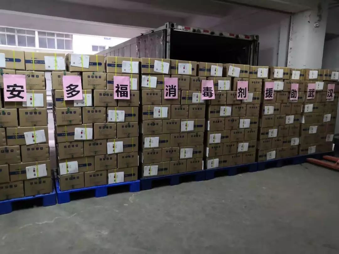1月25日(大年初一)下午,安多福公司緊急向向武漢援助500箱共12000瓶專(zhuān)業(yè)醫(yī)用消毒液,總價(jià)值564000元,連夜從深圳馳援武漢,用于保障疫情防控一線(xiàn)的醫(yī)護(hù)人員安全。