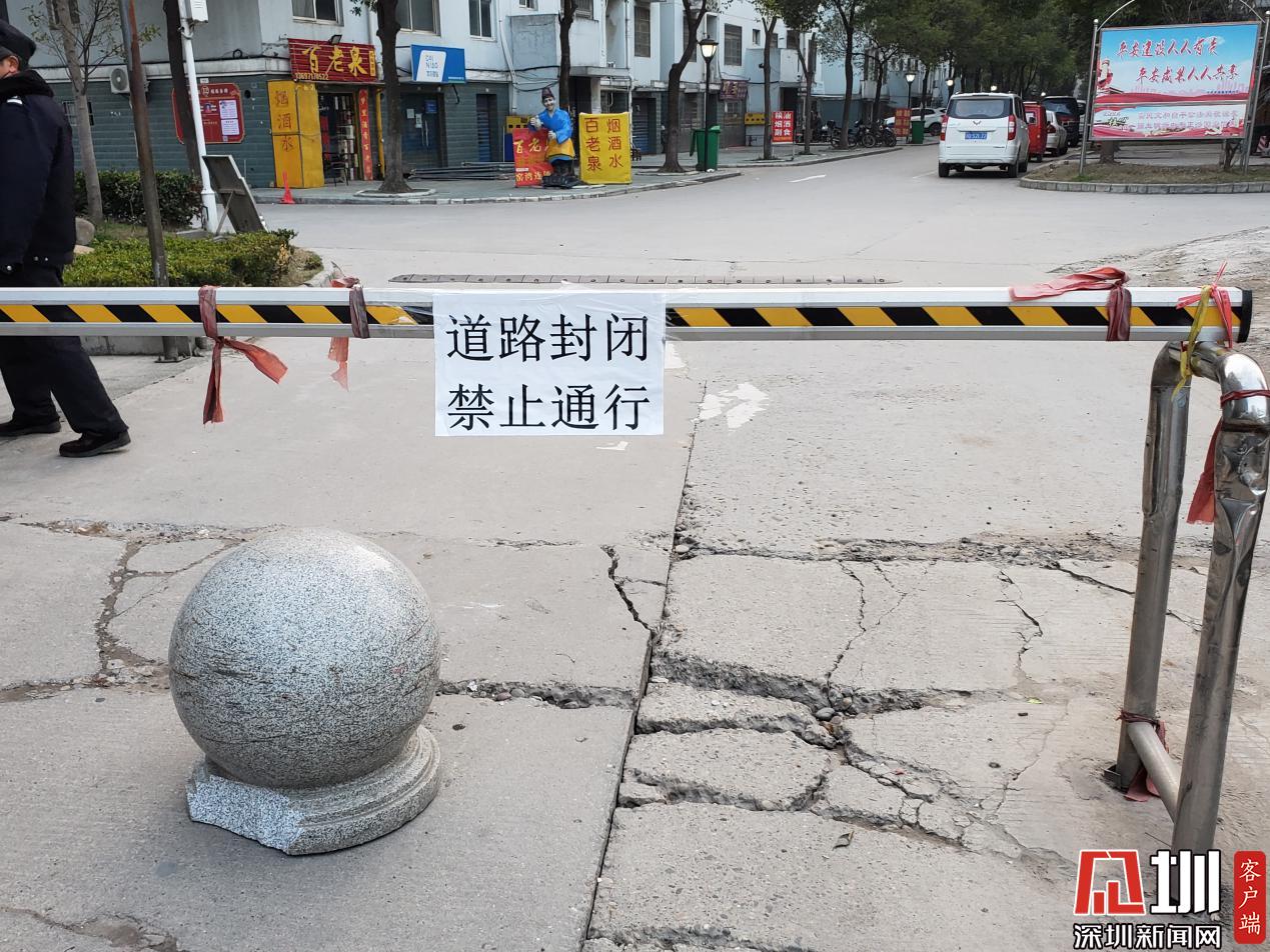 小區(qū)正門口有一塊巨大的顯示屏,播放著關(guān)于新型冠狀病毒的科普知識(shí)。出入口的崗?fù)?、店鋪門口都張貼著許多關(guān)于疫情防控的通知、告示、預(yù)防小知識(shí),以前車流不停的通道現(xiàn)已停止通行。除了藥店,周邊小店基本已經(jīng)關(guān)門,但仍有留下一些溫暖的話語(yǔ)。