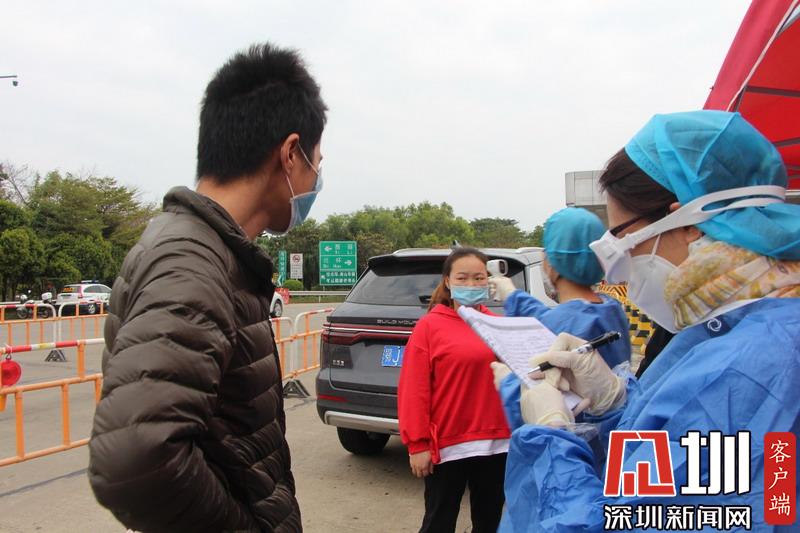 據(jù)了解,今年春節(jié)約有1500萬(wàn)人離深返鄉(xiāng),目前已有500萬(wàn)人回到深圳,還有近1000萬(wàn)人將返回深圳。2日下午,記者在現(xiàn)場(chǎng)看到,南頭收費(fèi)站僅開(kāi)放了三條車(chē)道。每條車(chē)道分別設(shè)有2名志愿者,一名負(fù)責(zé)協(xié)助交警測(cè)量體溫,并檢查車(chē)內(nèi)乘載人數(shù),另一名負(fù)責(zé)登記車(chē)輛及人員信息。