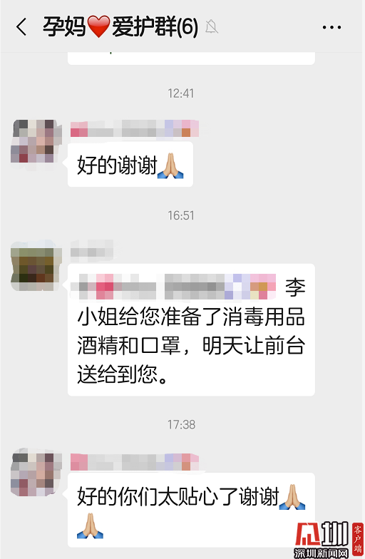 在酒店互助觀察群里,許少瓊了解到來自疫情發(fā)生地的李女士的情況,很重視,立刻與李女士取得聯(lián)系,在寬慰她積極樂觀面對疫情,安心接受觀察的同時,迅速組建了“孕媽愛護(hù)群”,群里有社康醫(yī)生、社工、社區(qū)工作人員,確保與李女士溝通順暢,保障她的需要和問題得到有效地解決。許少瓊談到,“疫情當(dāng)前,隔離不隔愛!我們要用社區(qū)溫度去溫暖和陪伴這位孕婦,讓她身心健康愉悅地在老圍社區(qū)度過14天的觀察期。”