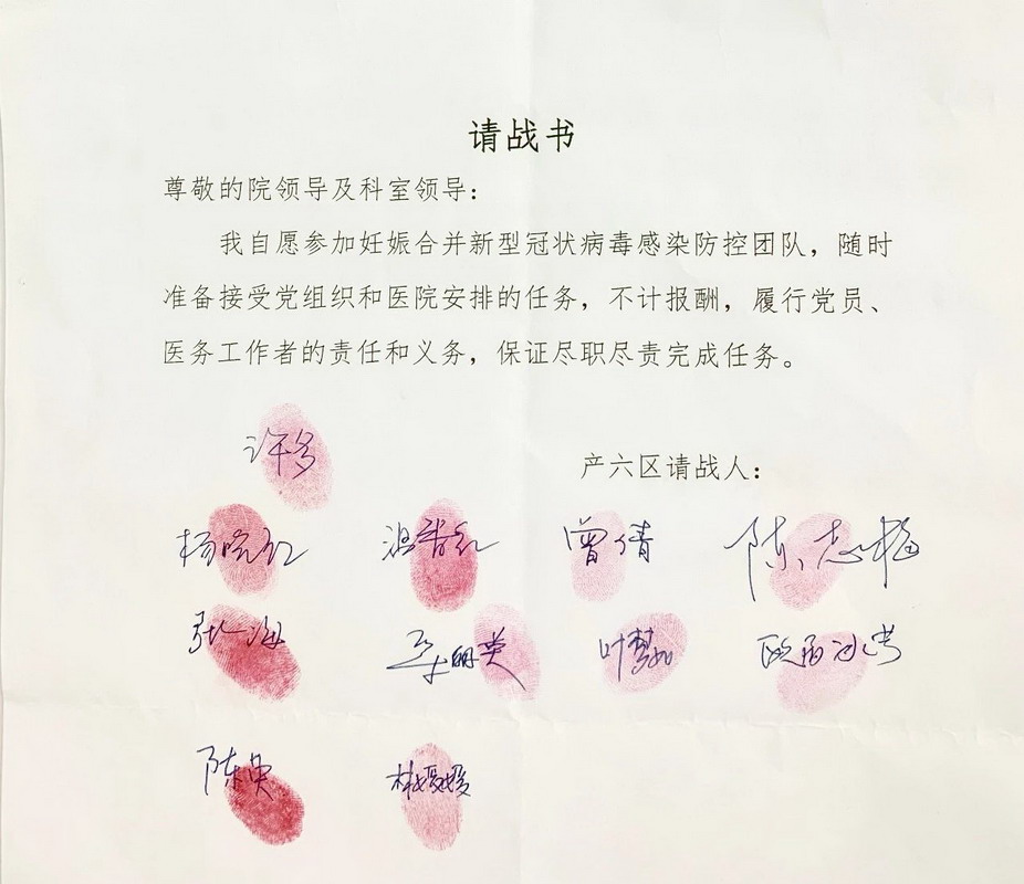 產(chǎn)科請(qǐng)戰(zhàn)書