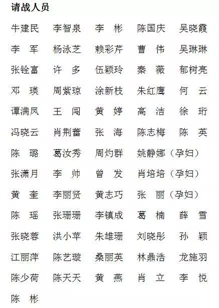 產(chǎn)科請(qǐng)戰(zhàn)人員名單
