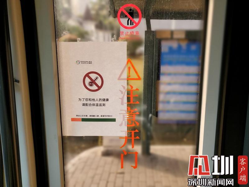 101線和M191線公交車前門張貼指示,提醒乘客配合體溫監(jiān)測(cè)。