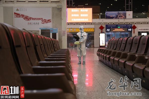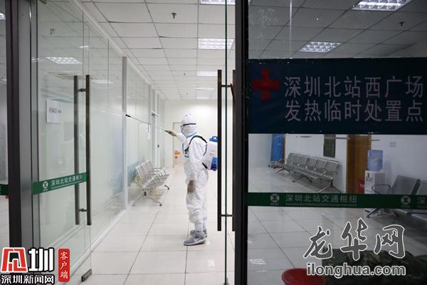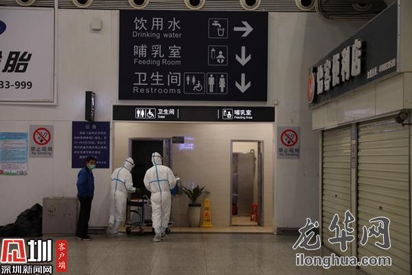 晚上11點,龍華區(qū)疾控中心對深圳北站進行全面消殺,時長約2小時,凌晨1點左右結束作業(yè)。