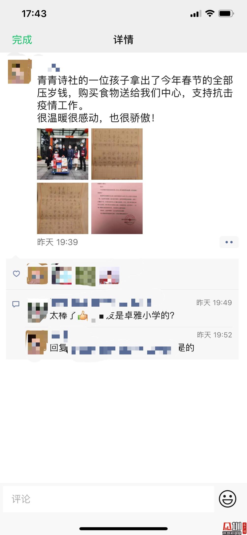 疾控中心工作人員、青青詩社王老師朋友圈截圖