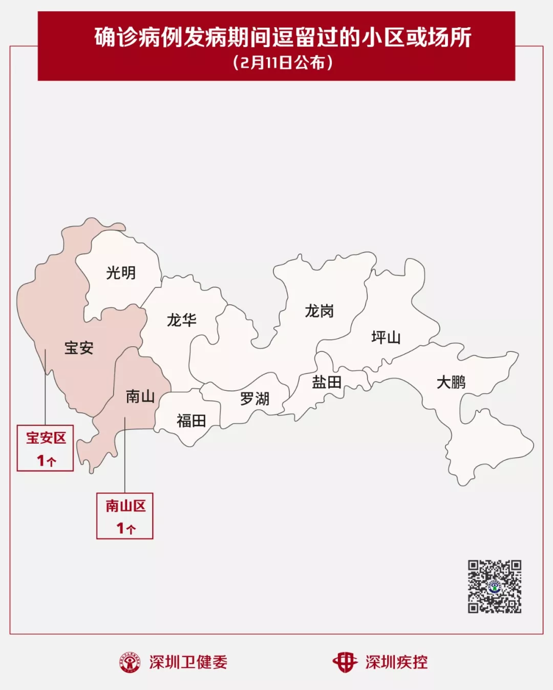 經(jīng)過疾控專業(yè)人員的流行病學(xué)調(diào)查確認(rèn),2月11日,深圳公布的有新確診病人發(fā)病期間逗留過的小區(qū)(場(chǎng)所),新增了2個(gè)。