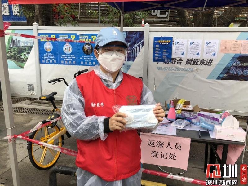 南嶺南路崗?fù)な悄蠋X村社區(qū)最大的出入口,人流、車流量大,隨著近幾日工廠企業(yè)開始陸續(xù)復(fù)工,每天出入的返深居民和車輛都絡(luò)繹不絕。羅秀蘭和李君海從2月3日開始,就“錯時”守在這個崗位上?!艾F(xiàn)在返程的人越來越多,崗?fù)ね砩弦惨兄驹刚??!崩罹Uf,他白天工作沒有時間,就報名參加晚上的值守。