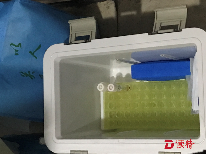 據(jù)了解,為了增加采樣的準(zhǔn)確性,每個(gè)醫(yī)學(xué)觀察居民均采用咽部和鼻腔分別取樣。醫(yī)護(hù)人員先用一個(gè)咽拭子在孫女士的咽喉內(nèi)部輕輕擦拭,另一個(gè)鼻拭子在鼻道內(nèi)鼻腭處轉(zhuǎn)動,然后將拭子放入貼有標(biāo)簽的樣本管內(nèi)。完成操作后,三位工作人員更換手套,為孫女士的愛人和孩子完成了采樣,采集的樣品被放入了工作人員隨身攜帶的“送檢專用箱”中。