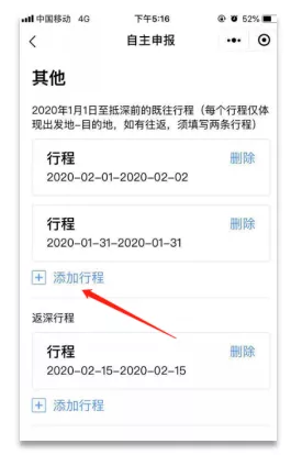 第二步:添加行程。如有多段行程,請在點擊確定后,再次點擊“添加行程”,添加下一段行程。