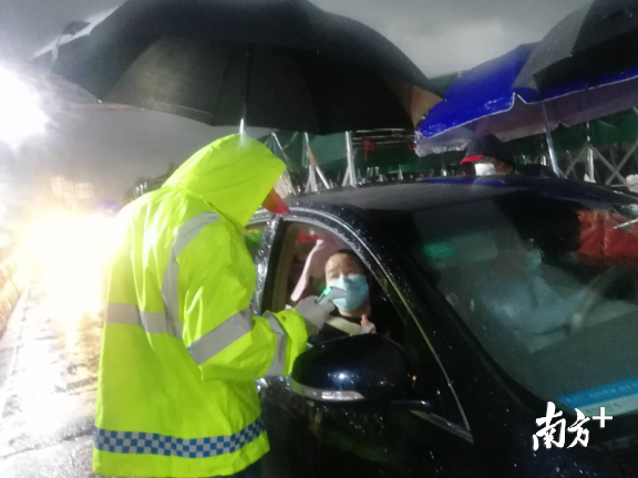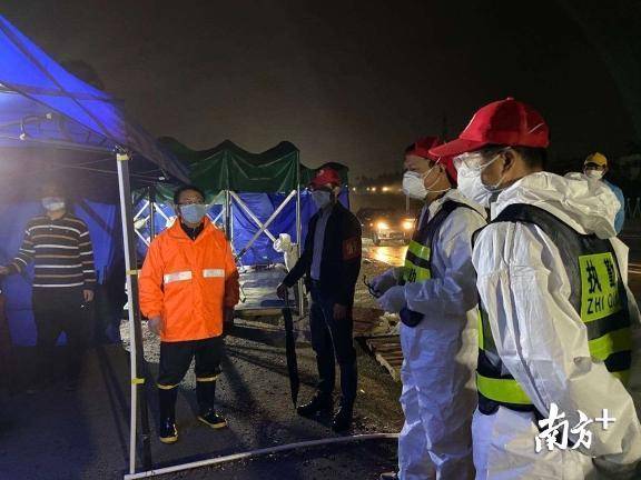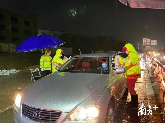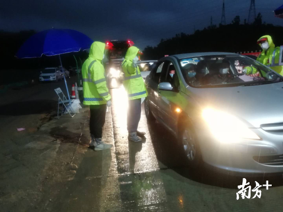 “富地崗防疫檢查點地理位置受限,條件相對艱苦。但我們不被困難所嚇到,不被風(fēng)雨而耽擱我們查驗工作?!逼旱亟值傈h員干部和工作人員在大雨中堅守,就在晚上10:30左右,該卡點攔截2臺粵B牌車輛,來自湖北黃岡籍人員一家5人,居住橫崗街道,坪地街道值班領(lǐng)導(dǎo)立即協(xié)調(diào)安排交警、派出所帶車,并成功和橫崗街道對接。