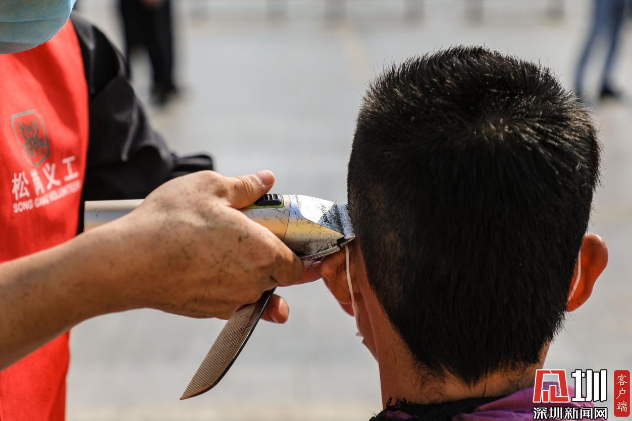 現(xiàn)場,還有環(huán)衛(wèi)工人、一線醫(yī)護(hù)人員等前來理發(fā)。松崗人民醫(yī)院一名醫(yī)護(hù)人員告訴記者,疫情爆發(fā)后,他第一時(shí)間取消了休假,立即投入到一線防疫工作中,今天是趁休息時(shí)間特意從醫(yī)院趕過來理發(fā),理完頭發(fā)后還要返回到工作崗位上。