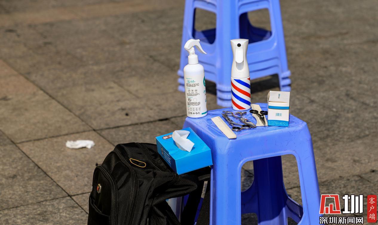 記者在現(xiàn)場注意到,在松崗街道星港城志愿服務(wù)U站前,共設(shè)置了四個(gè)座位,每個(gè)座位旁都配備了剪刀、電推、梳子等簡單的理發(fā)工具,由于義剪服務(wù)都設(shè)在空氣流通順暢的空闊室外,理發(fā)設(shè)備只能從簡。此外,每個(gè)座位還配有酒精噴霧、酒精棉片等消毒用品。據(jù)現(xiàn)場理發(fā)師介紹,他們每為一位工作人員剪完頭發(fā)后,都會對所有使用過的理發(fā)工具進(jìn)行消毒。
