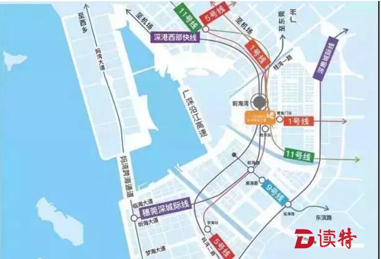 樞紐部分由地下5條軌道線路及口岸和公交、出租、旅游大巴等交通接駁場站構(gòu)成??傆玫孛娣e約20公頃。前海綜合交通樞紐由政府投資,深圳地鐵集團(tuán)建設(shè)。項目分為近期和遠(yuǎn)期兩部分實施。預(yù)計2020年完成這項交通巨制的地下土建。目前地鐵1、5、11號線前海灣站已經(jīng)開通,穗莞深城際線預(yù)計年內(nèi)將開工,港深西部快線正在規(guī)劃中。