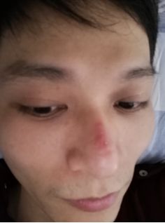 ▲9個(gè)小時(shí)的工作下來,林培挺的鼻梁早已被口罩勒紅。
