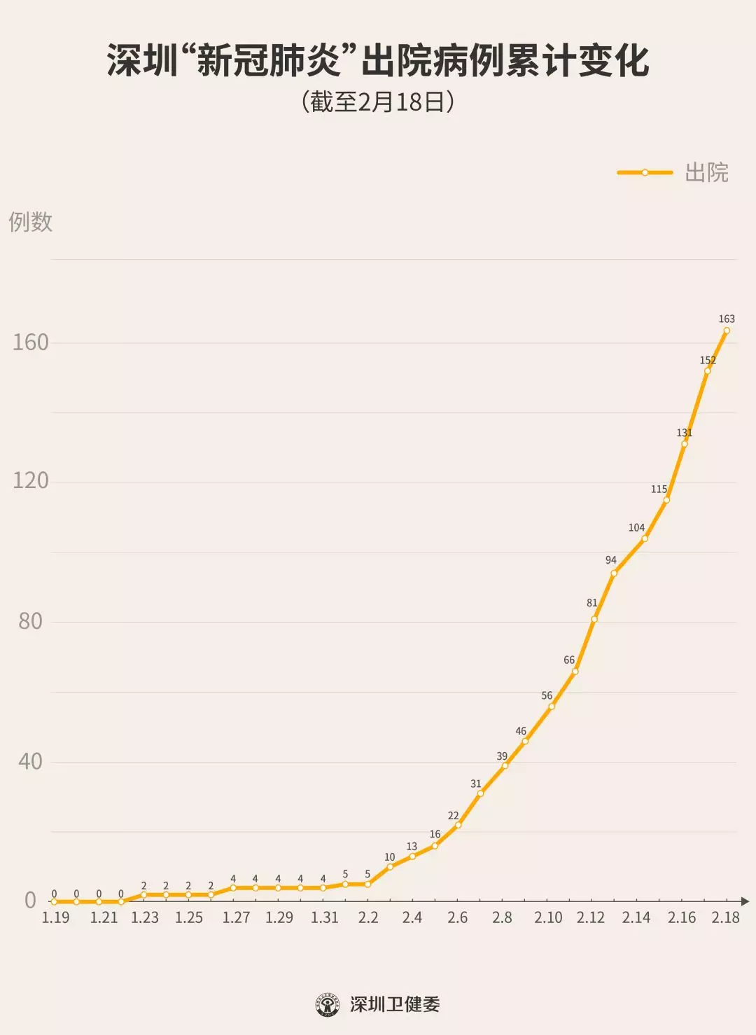 2月18日下午,經(jīng)專家組會診,深圳再有11名新型冠狀病毒肺炎確診患者出院,累計達163人,連續(xù)16天有人出院。