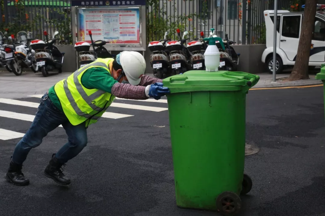 上午7點(diǎn)半,第一個(gè)到崗的田夫珍開始測量體溫,消毒后穿上印有“深能環(huán)?!钡鸟R甲,戴上安全帽,檢查車輛消殺情況。8點(diǎn)整,他和14名同事一起出發(fā),分赴鹽田7條線路,開始和餐廚垃圾打交道。