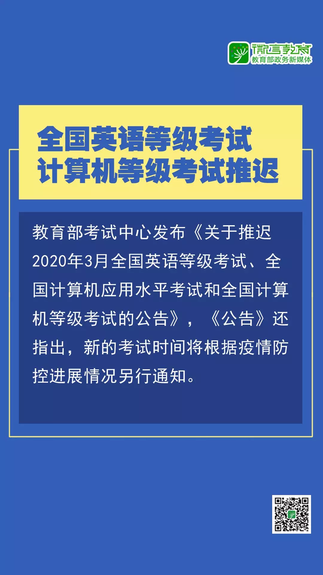 注意啦!研究生、中小學(xué)教資、全國(guó)英語等級(jí)等考試推遲