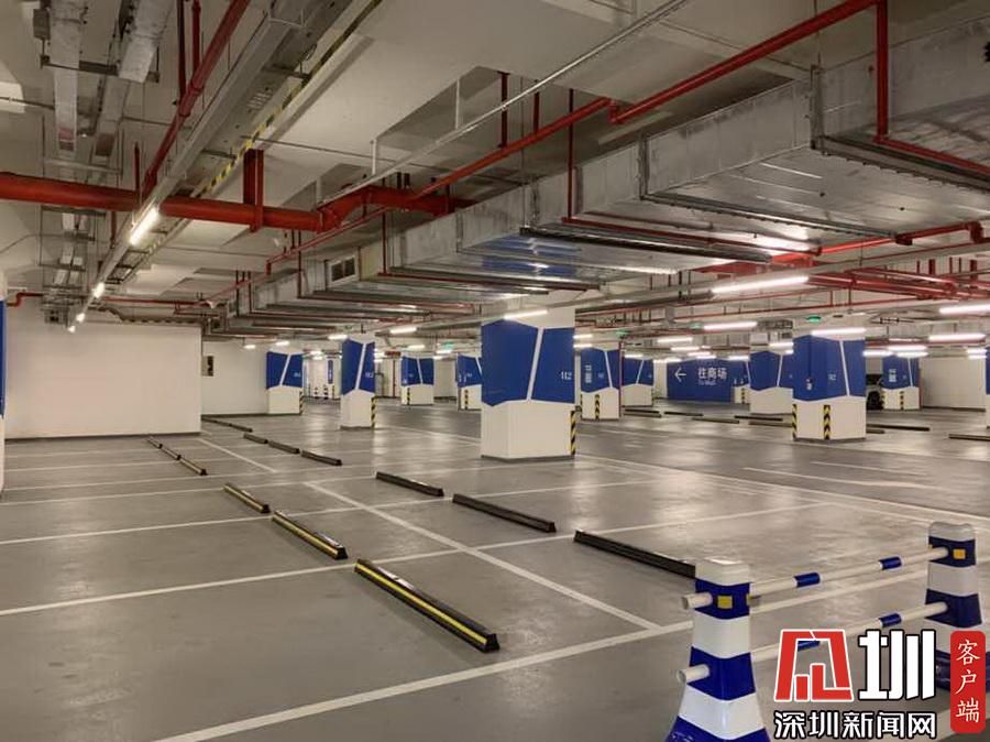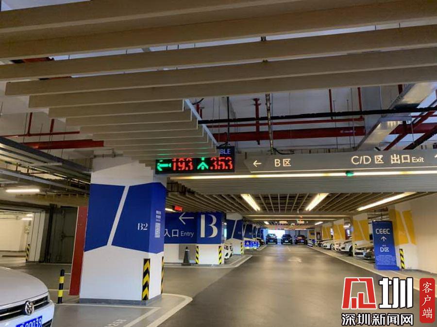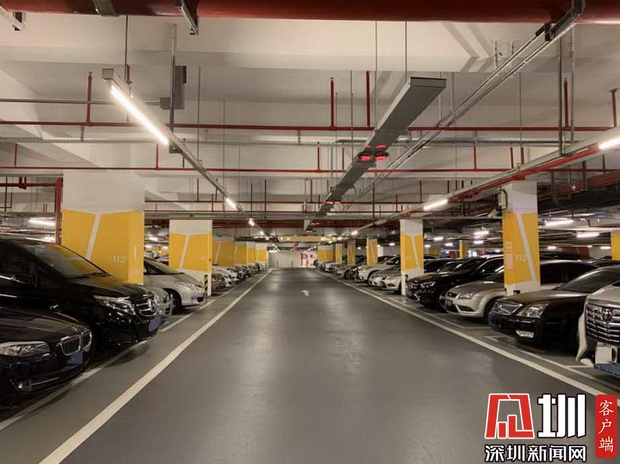 由于是商場和寫字樓共用的停車場,因此在寫字樓一方的車輛停得比較多,而商場處的車輛空位還有很多。