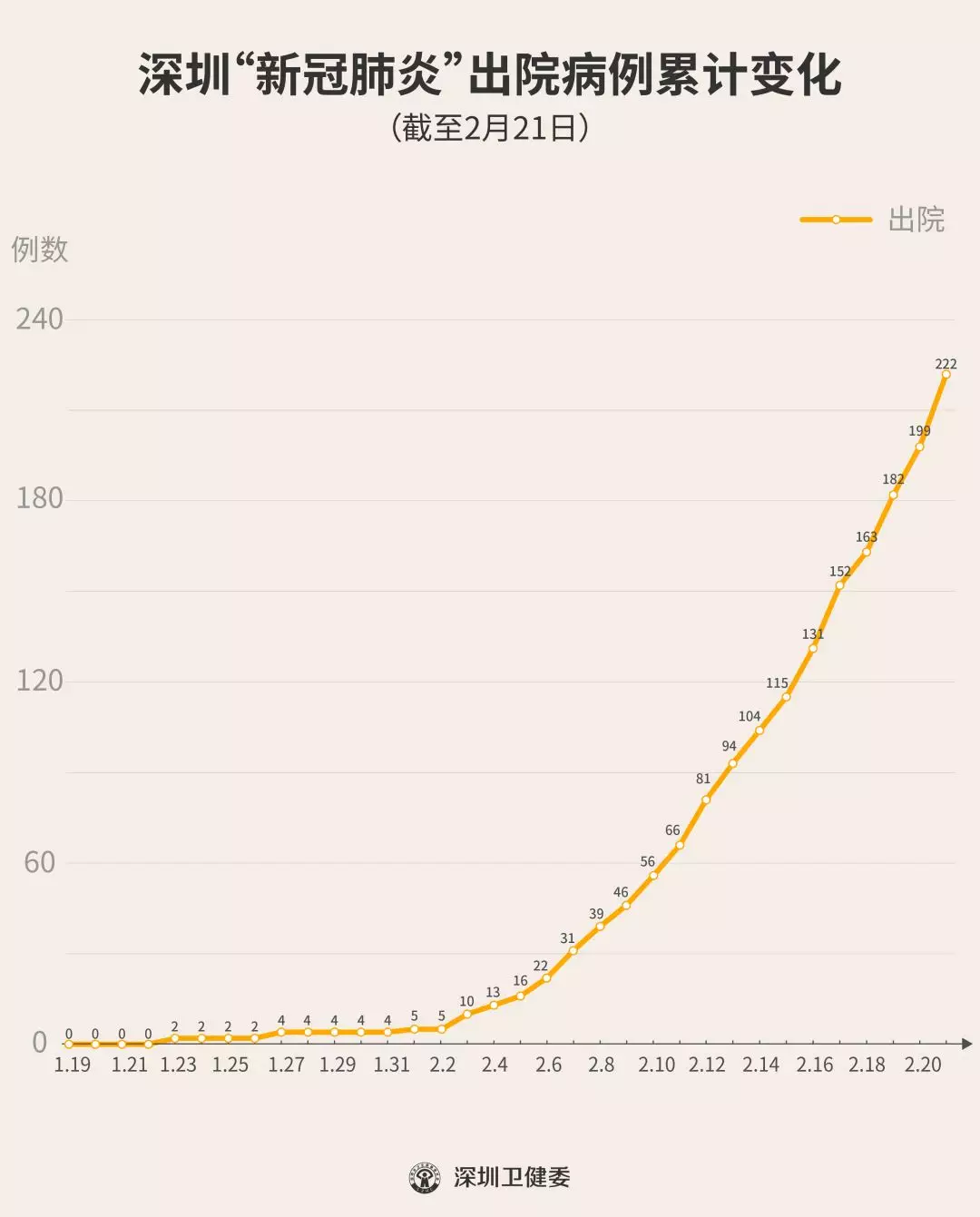 至此,深圳確診人數(shù)416人,出院人數(shù)222人,在院人數(shù)192人,出院總?cè)藬?shù)已超過(guò)確診總?cè)藬?shù)的一半。