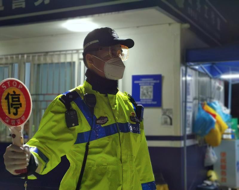 2月14日的凌晨,龍利正在廣深高速寶安收費站防疫檢查點執(zhí)勤,每一輛入深的車輛他都必須仔仔細細地攔截下來,核對信息,協(xié)助防疫工作人員給車上所有人測量體溫。