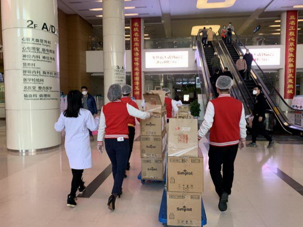 蔡麗麗與堅(jiān)守營運(yùn)一線的伙伴們?yōu)榭挂咭痪€的醫(yī)護(hù)人員送去愛心餐食。