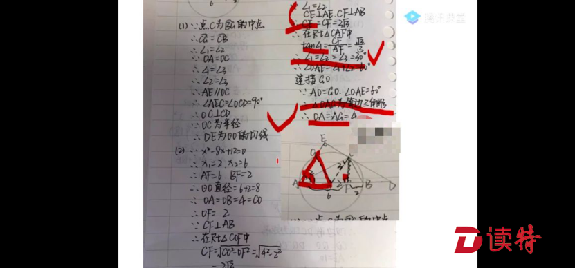 紅嶺中學(xué)初三生王龍?jiān)隍v訊課堂的作業(yè)截圖。