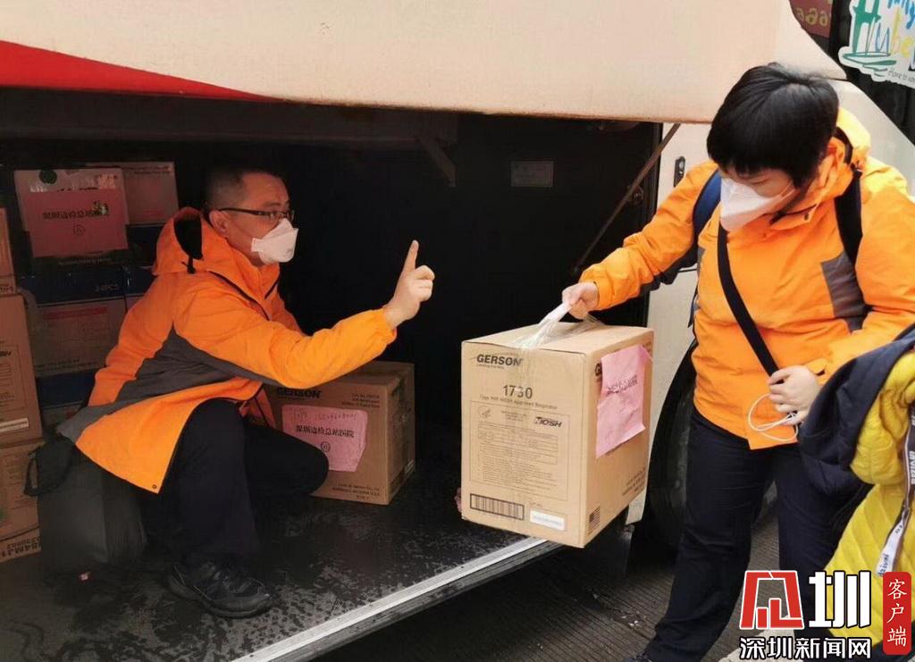 抵達(dá)荊州后,醫(yī)療隊(duì)人員在搬運(yùn)物資