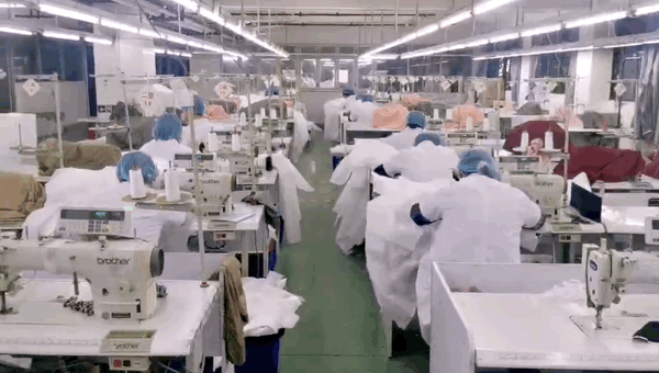 位于大浪時尚小鎮(zhèn)的影兒集團,加緊生產(chǎn)隔離服,支援疫情防控工作。