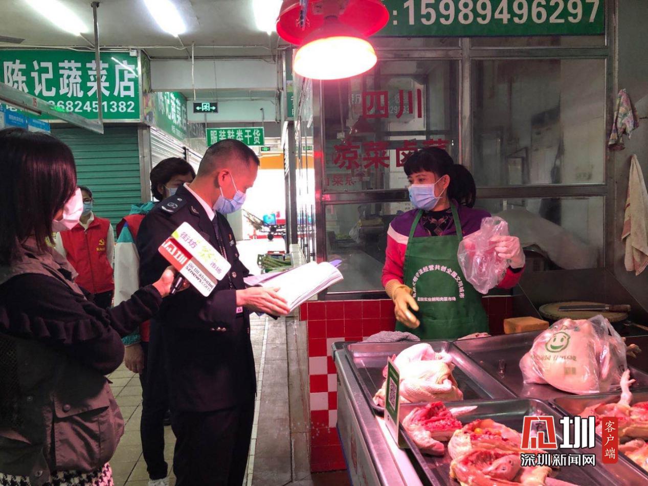 深圳市市場監(jiān)管局鹽田所執(zhí)法人員藍華榮表示,朝陽肉菜市場是從年初二開始營業(yè)的,鹽田所從年初二開始,每天都會對這個市場進行檢查。目前除了日常檢查之外,還會對市場的防疫防控工作進行檢查?!耙咔槠陂g主要檢查市場是否有售賣野味和商戶是否有佩戴口罩,當(dāng)?shù)谝淮伟l(fā)現(xiàn)商戶沒有戴口罩時,執(zhí)法人員會發(fā)放一份責(zé)令改正通知書給商戶,第二次還被發(fā)現(xiàn)沒有戴口罩的話,市監(jiān)部門將通知公安部門。”執(zhí)法人員介紹道。