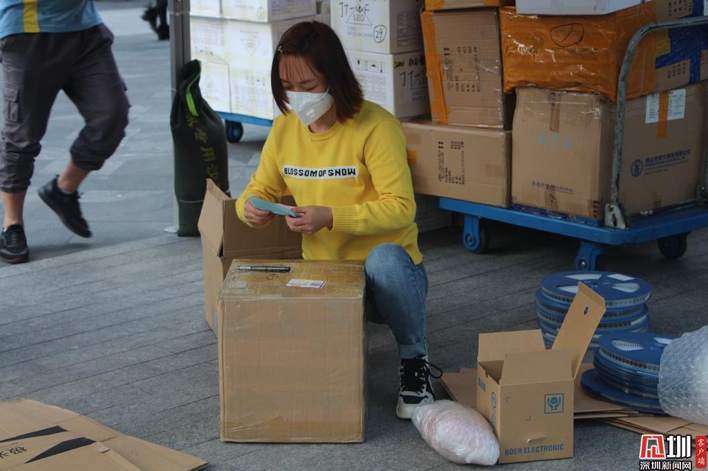 “早上坐地鐵四號線過來感覺人還是很多,我還專門戴了兩個口罩?!凹易↓埲A區(qū)的劉女士是華強(qiáng)北的一位商家,她正在清點(diǎn)剛到的一批貨物。