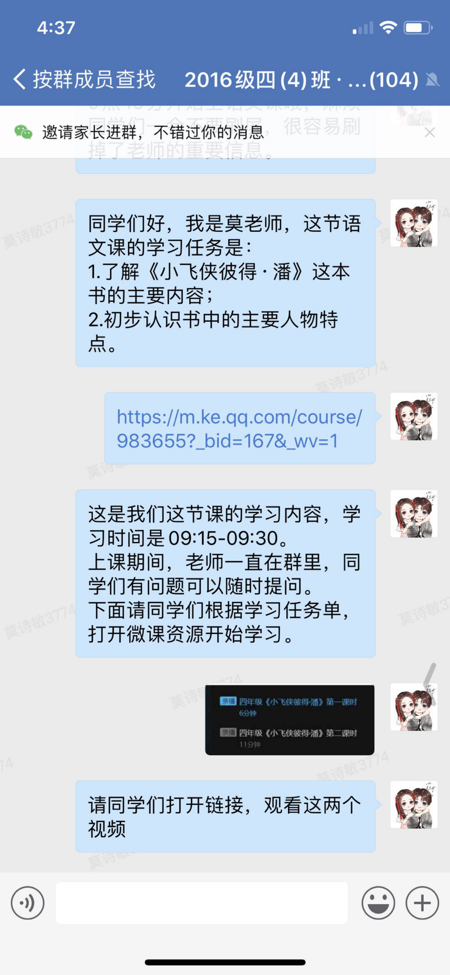 “學(xué)校考慮到老教師較多,‘龍華云校’上的騰訊課堂操作比較難把握,最終選擇了在微信上開課?!鄙险n前,莫詩敏會(huì)先列一個(gè)任務(wù)單,讓學(xué)生明確學(xué)習(xí)目標(biāo),然后再將提前錄制好的微課發(fā)到班級(jí)群里供學(xué)生自行觀看。學(xué)生聽課時(shí),她全程在線回答學(xué)生的提問。每節(jié)課,她都會(huì)布置小作業(yè),并預(yù)留出時(shí)間給學(xué)生完成,晚上8點(diǎn)半再在線上講解。