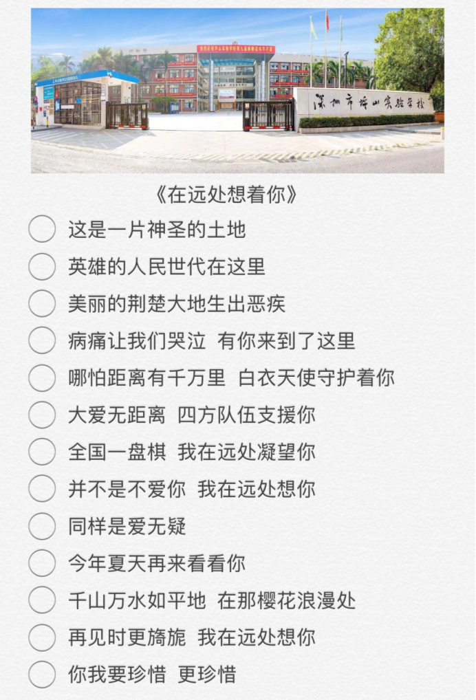 見圳客戶端·深圳新聞網(wǎng)2020年2月27日訊(記者 陳亞京 通訊員 王恩科)2020年的新冠肺炎疫情,注定是學生一段難忘的記憶。在全國人民團結(jié)一心、同舟共濟抗擊疫情時,來自深圳坪山實驗學校7年級(13)班的凃依舟用音樂傳情,創(chuàng)作歌曲《在遠處想著你》表白奔赴前線的“戰(zhàn)士”,為武漢加油!