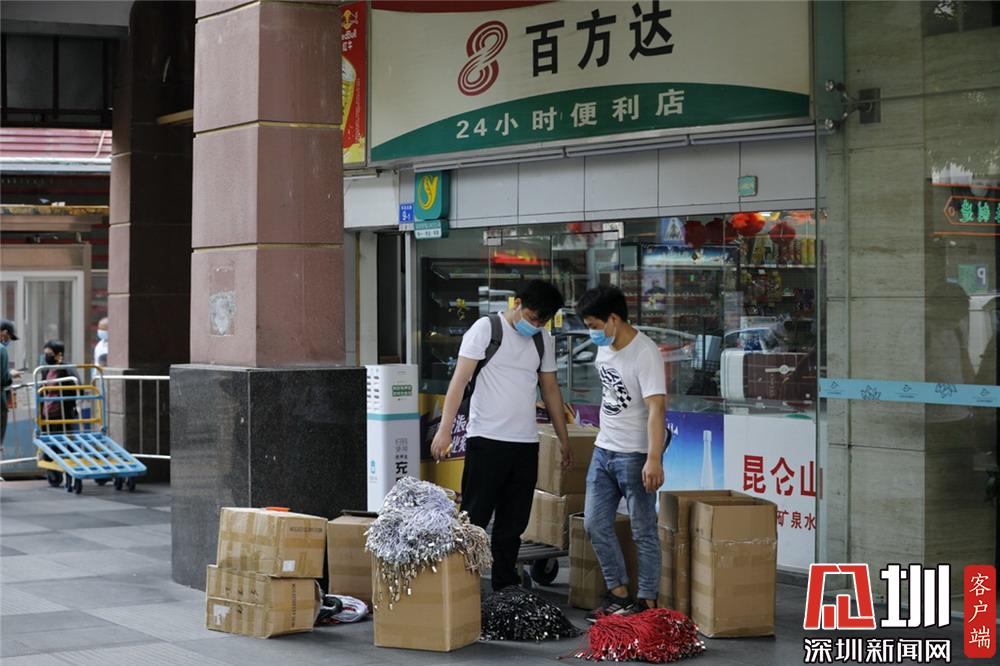 華強北,兩位正在搬運貨物的人。